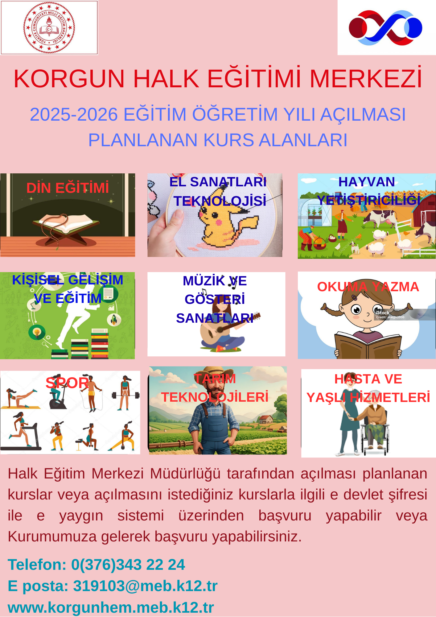 Halk Eğitim Merkezi Müdürlüğü tarafından açılması planlanan kurslar veya açılmasını istediğiniz kurslarla ilgili e devlet şifresi ile e yaygın sistemi üzerinden başvuru yapabilir veya kurumumuza gelerek başvuru yapabilirsiniz. Açılması planlanan kurs alanları için tıklayınız.